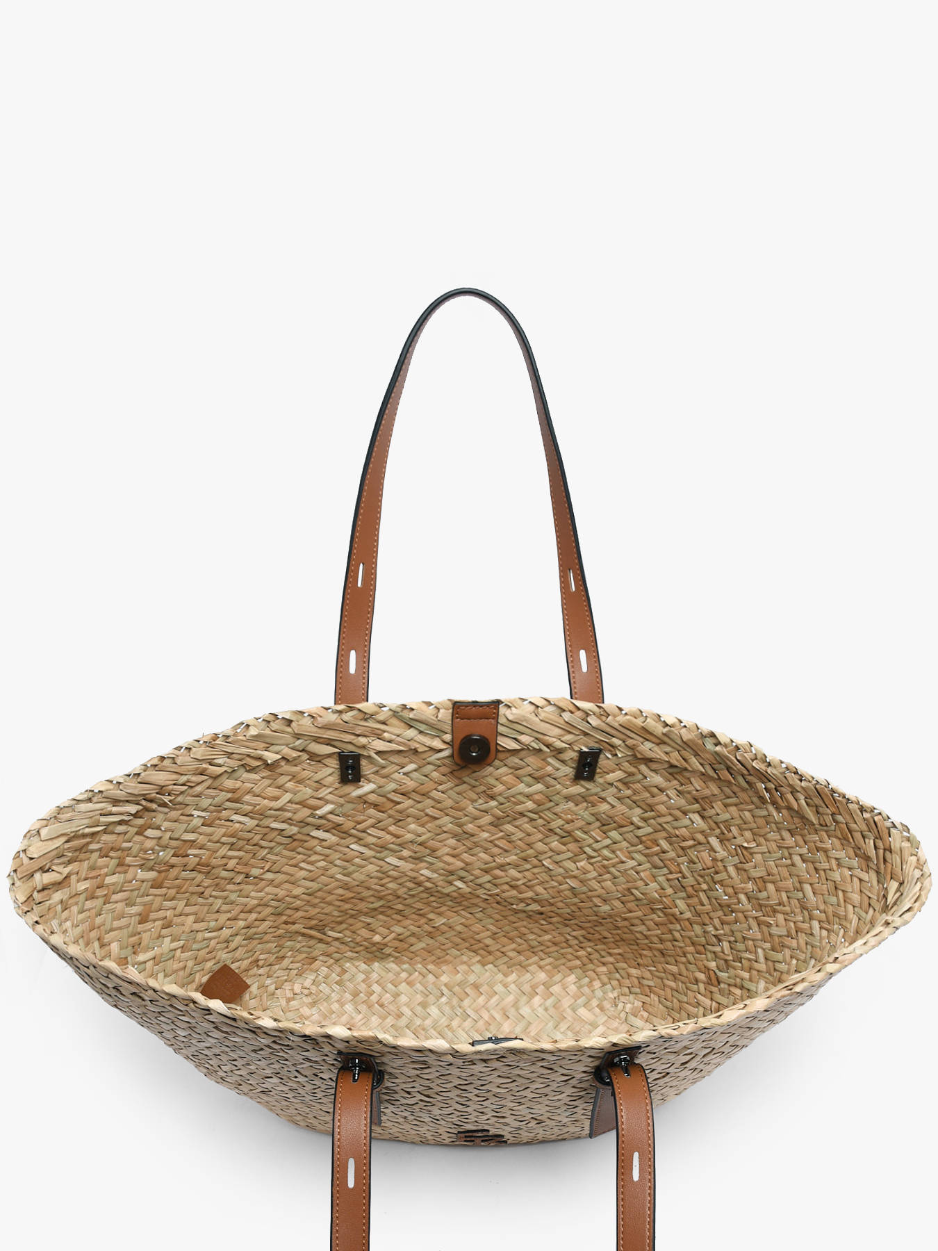 Le sac porté épaule ETRIER de la ligne SHETLAND revisite le cabas estival avec élégance et modernité. Confectionné en roseau sublimé par des finitions en cuir, il associe style naturel et praticité au quotidien. Son compartiment spacieux se ferme à l’aide d’une pression aimantée, offrant un accès simple et sécurisé à vos essentiels. Le porté épaule est ajustable grâce à un système de glissière rehaussé de bijoux gravés ETRIER, tandis que son anse de 22 cm assure un confort optimal. Le logo en empiècement cuir sur l’avant du panier signe ce modèle d’une touche distinctive et authentique, idéal pour accompagner vos looks d’été avec caractère.