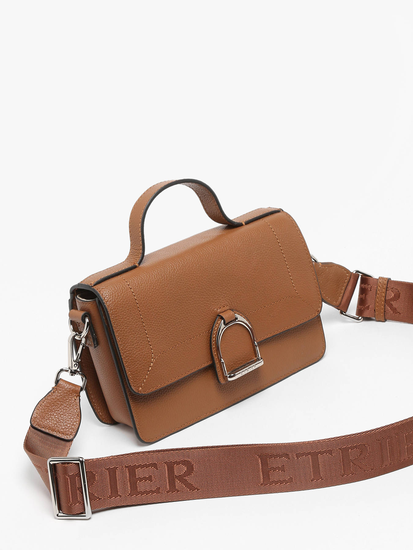 The ETRIER crossbody bag from the ALTESSE line, in a medium size, is crafted in cowhide leather. At the back, there is a flat pocket. It features a wide, removable canvas shoulder strap embroidered with the tonal ETRIER logo, as well as a leather handle. The flap closure, adorned with the iconic metal stirrup emblem of the house, secures with a press stud. Versatile, it can be worn over the shoulder or carried by hand. Inside, discover a leather key holder, a compartment with a flat pocket, and a zippered pocket for optimal organization. Available in various seasonal colors, as well as in larger and smaller sizes.